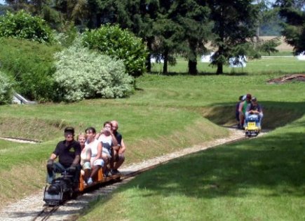 qui fonctionnent avec un moteur thermique ou électriques sur accus, 12 voitures qui transportent des passagers à califourchon et un train de travaux