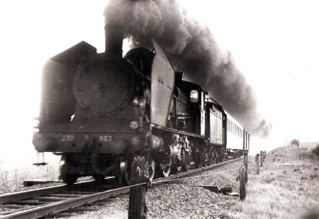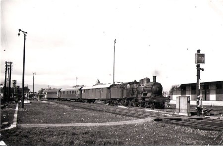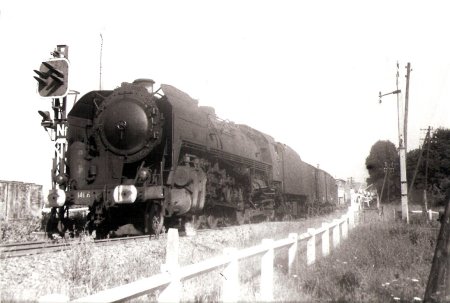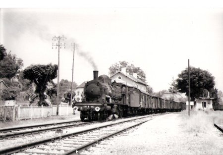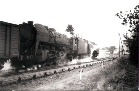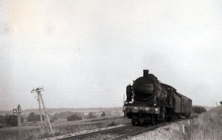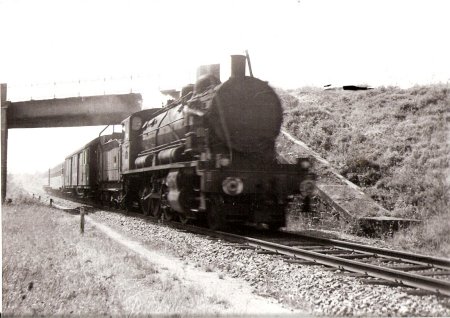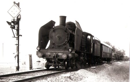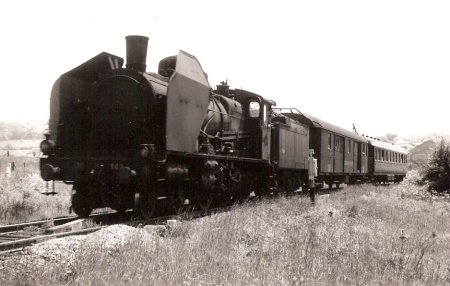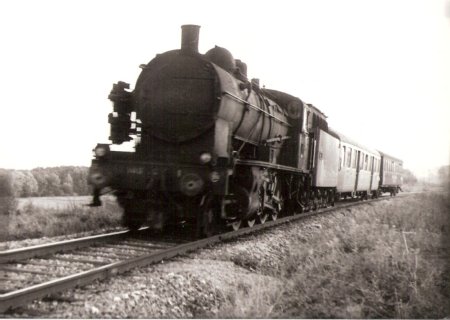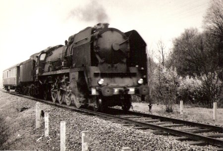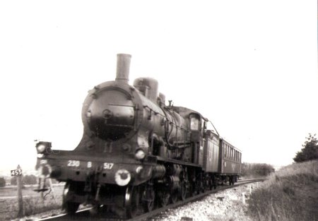 Eté 64. La 230-B-517 de Belf.(héroïne du film "Le Train" au PK 453, train 2845. Eté 63, la même machine au train 2841 |