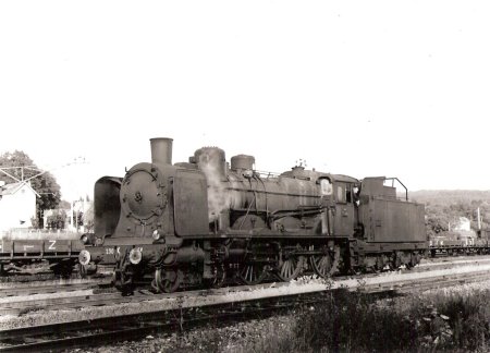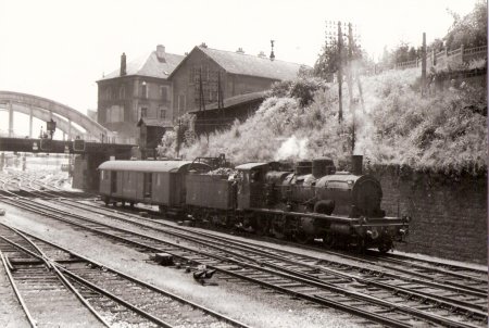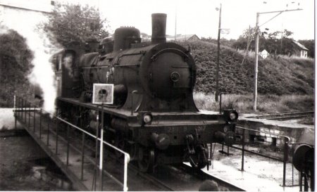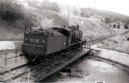 Delle 1965. La 230-B-759 de Belf. dégage le pont tournant. Au fond, les remises Suisse et Est...............1963, la 230-B-517 se met marche avant |