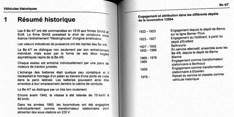 Ci-dessous, un bref résumé historique des Be 4/7, petite série de 6 exemplaires. Documents de François-Xavier GINDRAT. |