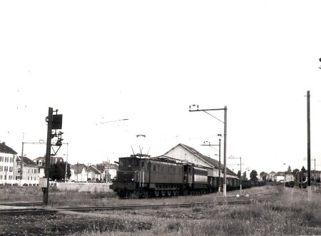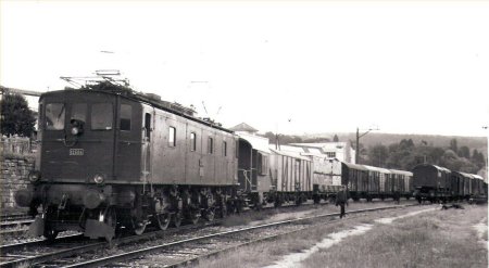 Gare de Delle, années 1960-65. La Ae 3/6 I N° 10688, arrive de Suisse et manoeuvre pour repartir en tête de son train. |
