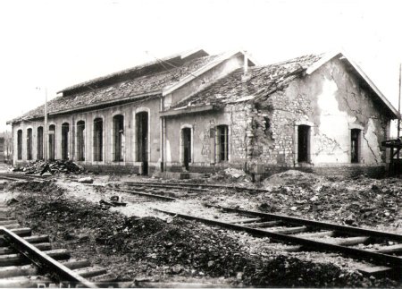 Gare de Delle 27 mars 1945 après un bombardement. Le triage et le dépôt du P.L.M. |